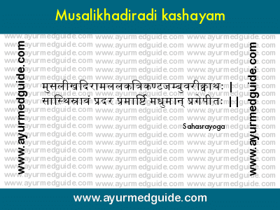 Ashtavargam Kashaya or Ashtavargam Kashayam is an ayurvedic medicinal decoction. It is used in treating Vata predominant disease. It is also known as Bala Sahacharadi Kashaya. Ingredients of Ashtavargam Kashaya: Bala (Sida cordifolia) Sahachara (Strobilanthes Ciliatus) Eranda (Ricinus communis) Shunti (Zingiber officinalis) Rasna (Pluchea lanceolata) Suradruma/Devadaru (Cedrus deodara) Sinduvara/Nirgundi (Vitex negundo) Lashuna (Allium Sativum) Preparation of Ashtavargam Kashaya All … Read more