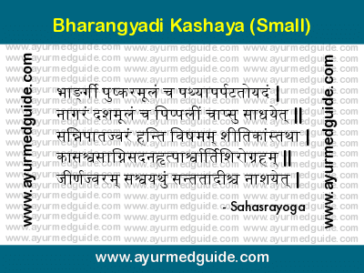 Ingredients of Bharangyadi Kashaya (Small) : Bharangi (Clerodendron serratum) Pushkara moola (lnula racemosa) Pathya/Haritaki (Terminalia chebula) Parpata (Fumaria indica) Toyada/Musta (Cyperus rotundus) Nagara/Shunti (Zingiber officinalis) Dashamoola 1. Bilva (Aegle marmelos) 2. Agnimantha (Premna mucronata) 3. Shyonaka (Oroxylum indicum) 4. Patala (Stereospermum suaveolens) 5. Gambhari (Gmelina arborea) 6. Brihati (Solanum indicum) 7. Kantakari (Solanum xanthocarpum) 8. Gokshura … Read more